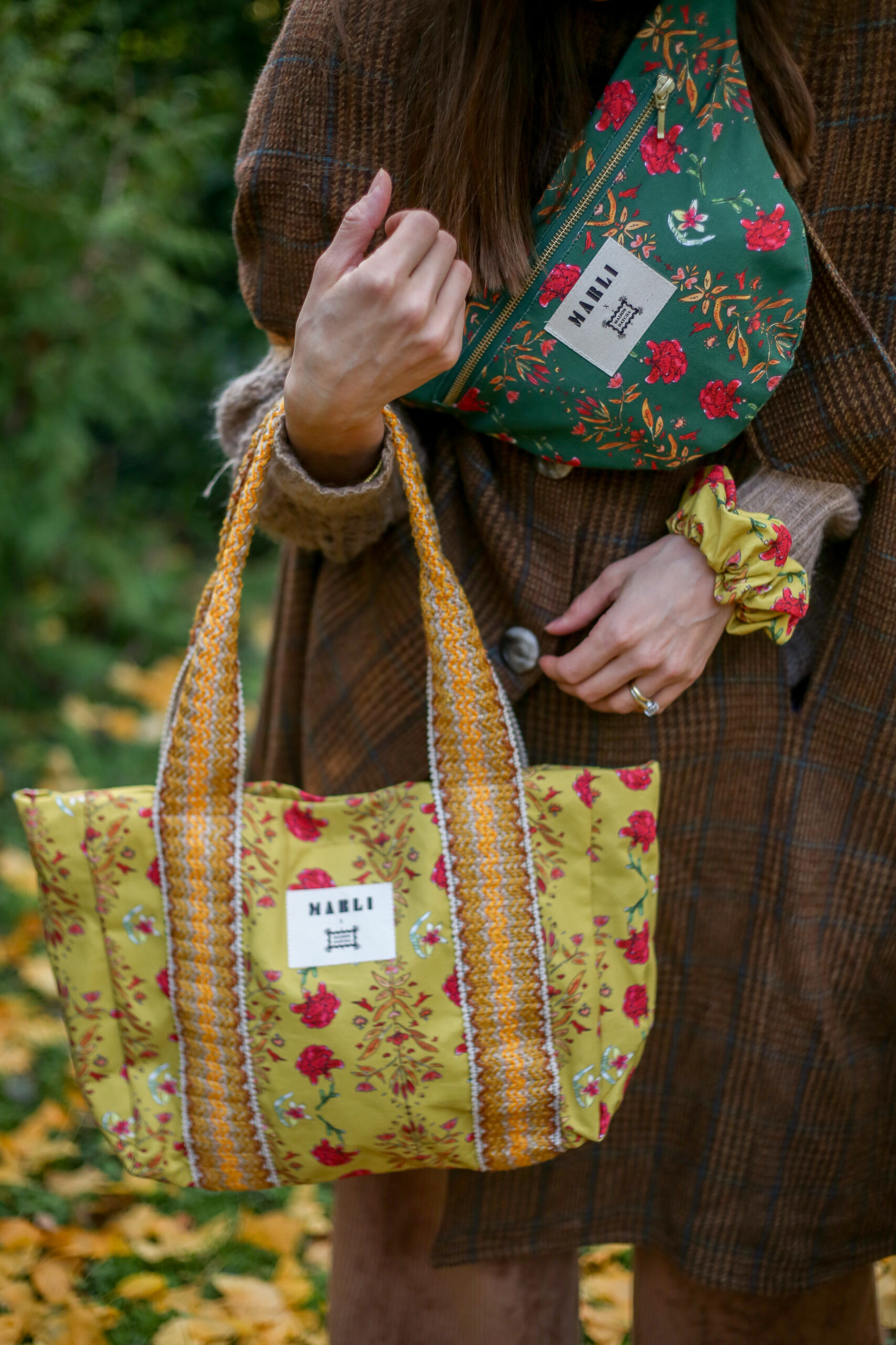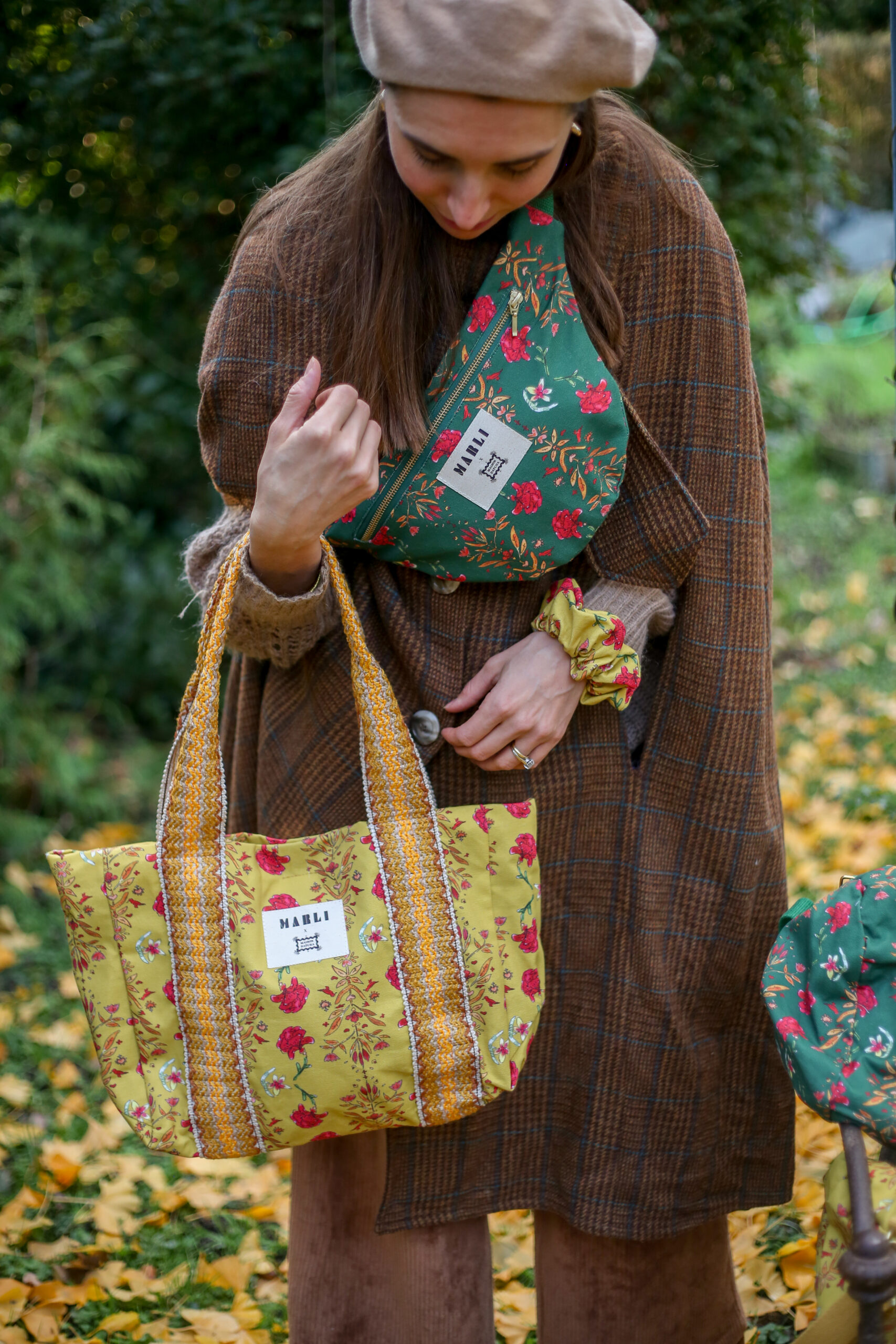 Composition : Tissu 100% coton, anses en passementerie upcyclée, fermeture top aimant