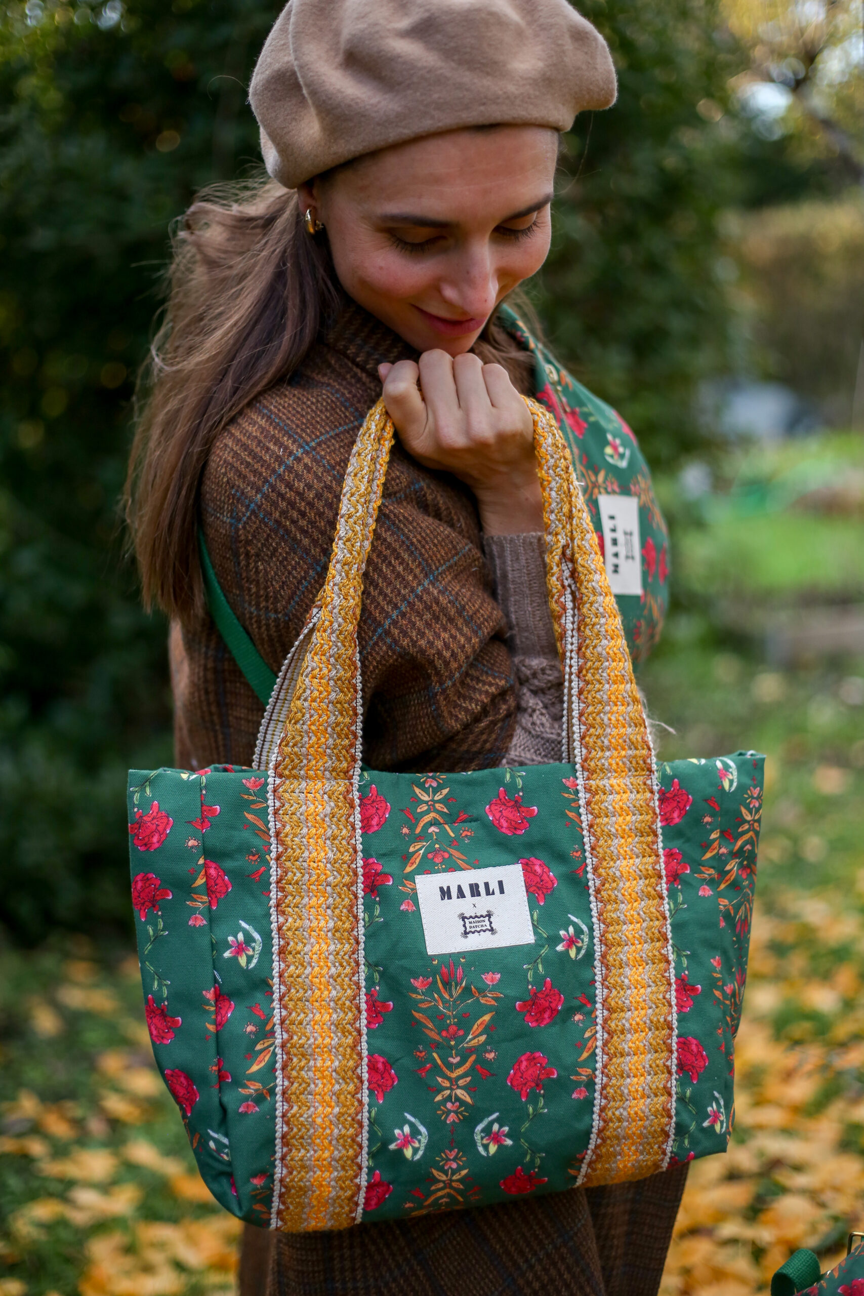 Cabas carré Marina – Motif fleuri vert sapin