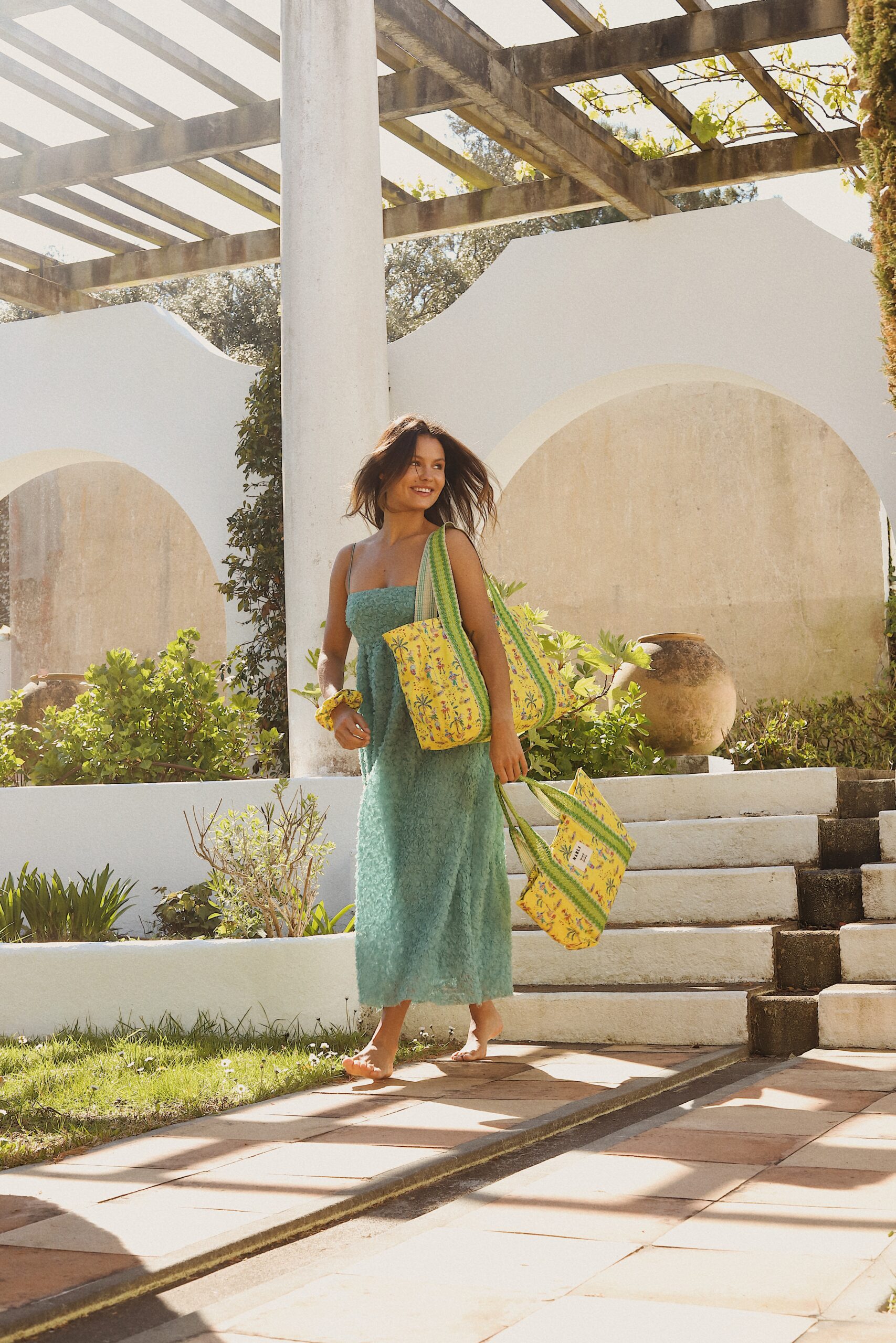 Fabriquée à la main en France, ce cabas unique est confectionnée à partir des tissus issus de notre collaboration exclusive avec Maison Datcha, inspirée du Brésil. Une scène en mouvement. Danseuses, musiciens, rythme et énergie se déploient sur un fond jaune lumineux. Cet imprimé a été créé spécialement pour cette collection capsule: vivant et chaleureux, qui capture l’atmosphère festive et vibrante du Brésil.