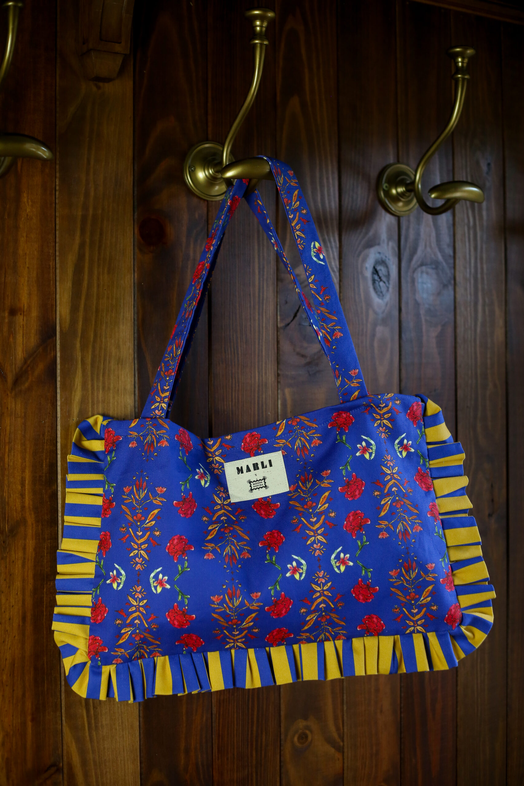 Cabas froufrou Anastasia – Motif fleuri bleu indigo