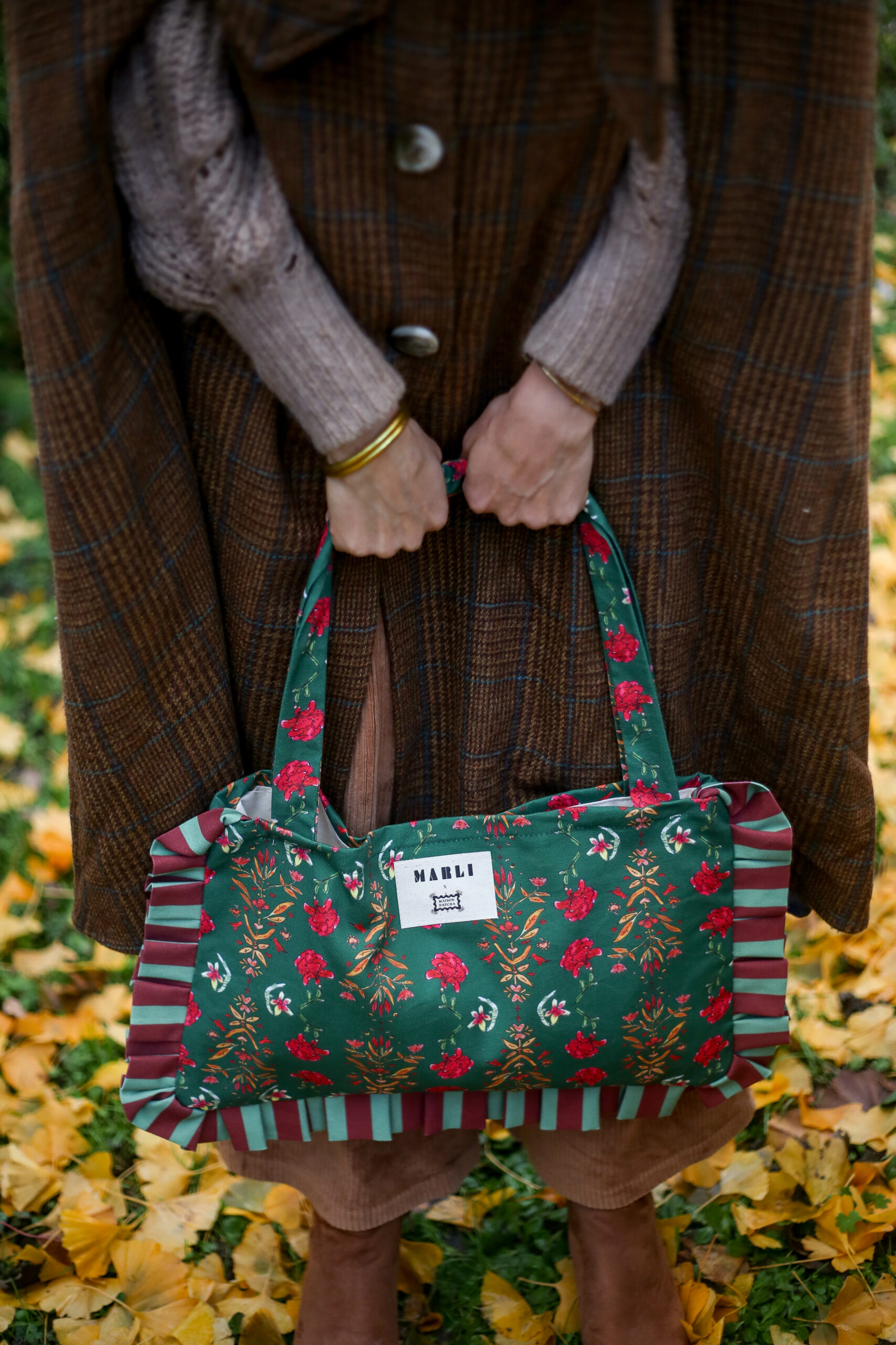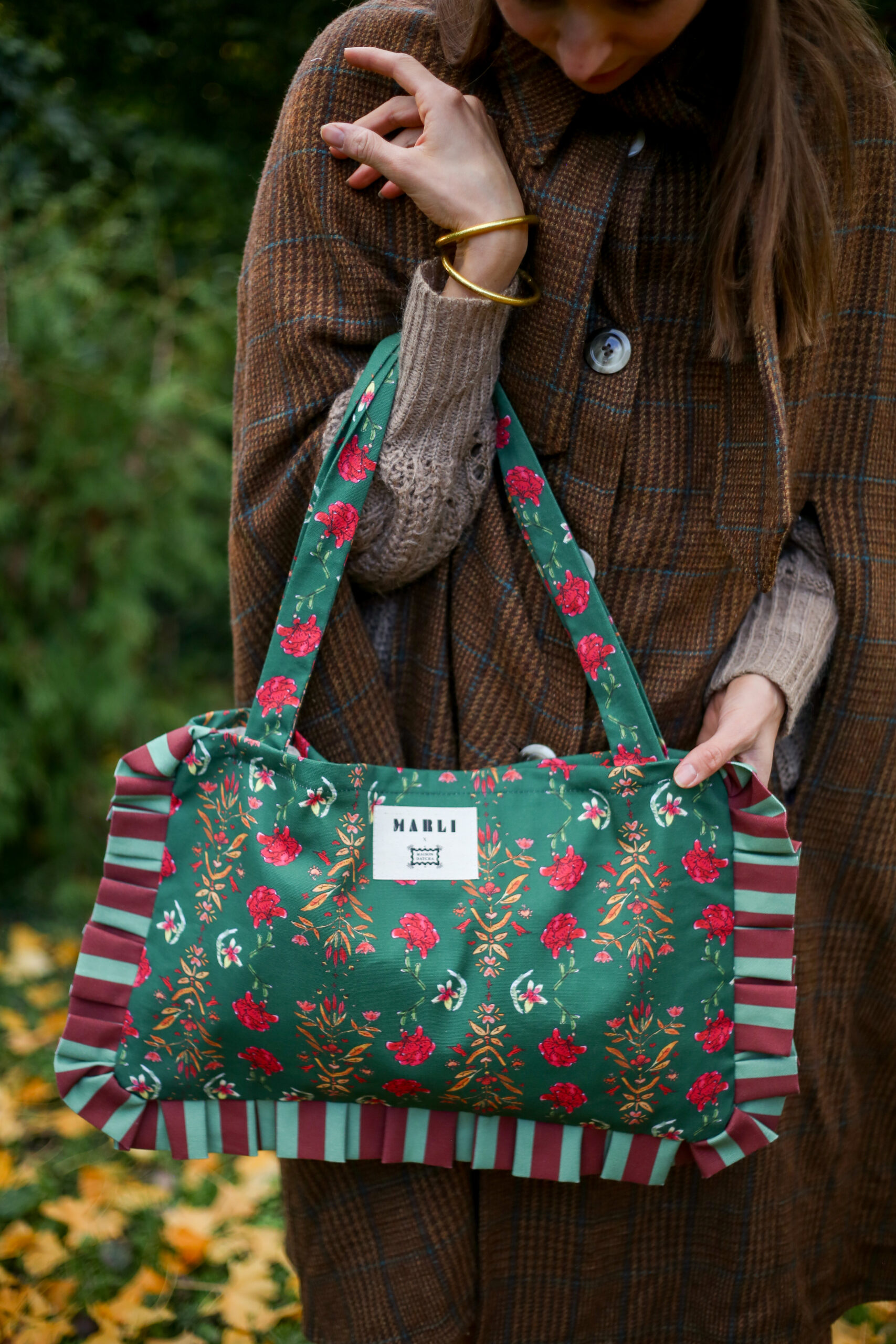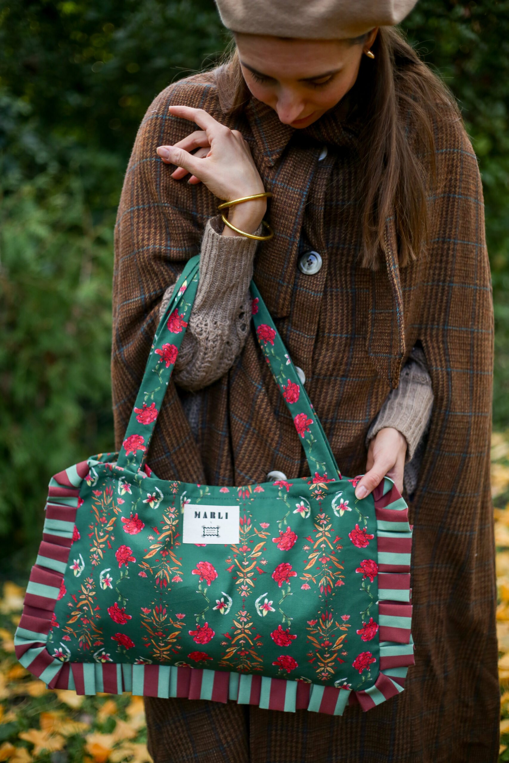 Cabas froufrou Anastasia – Motif fleuri vert sapin