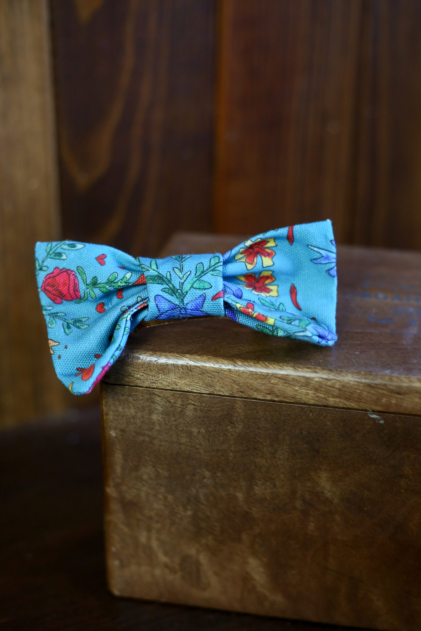 Petit nœud Elena – Motif oiseaux bleu canard