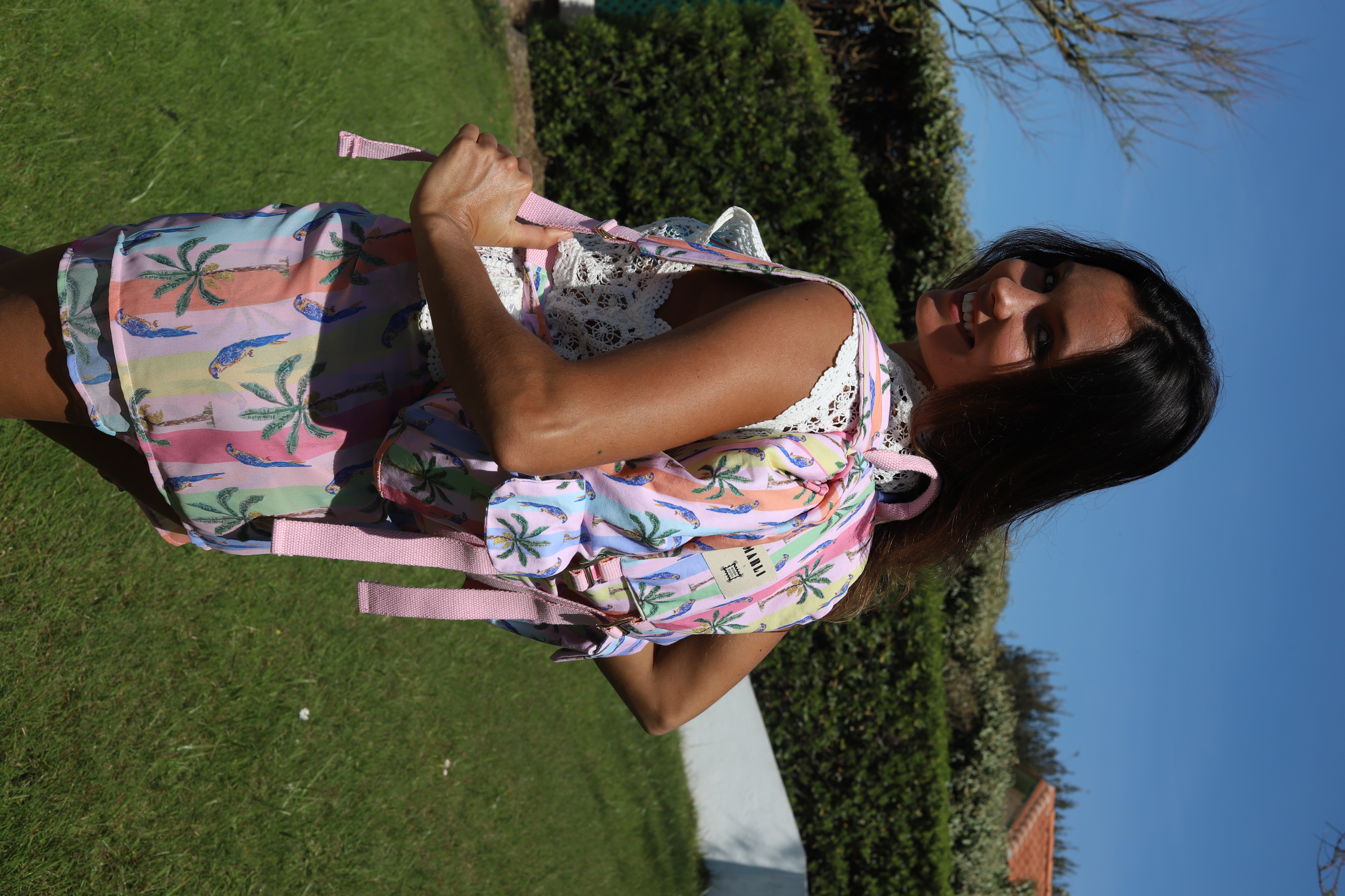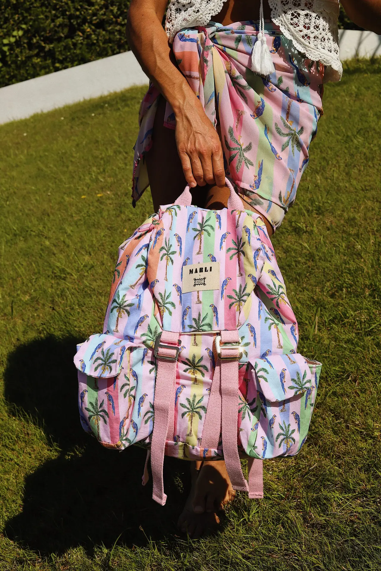 Sac à dos Pablo – Motif Perroquets et palmiers fond multicolore