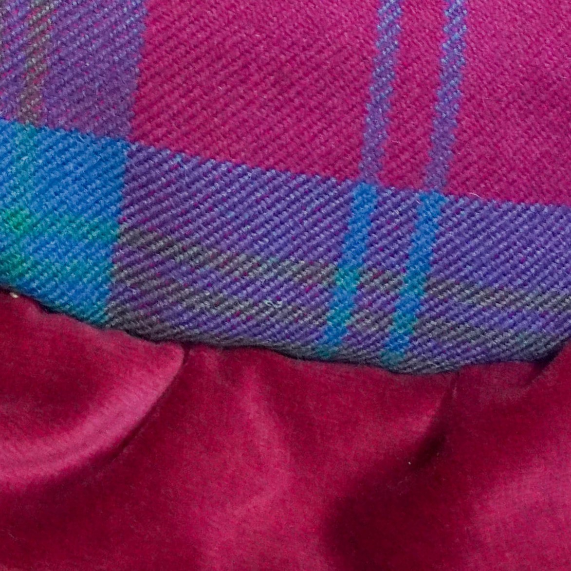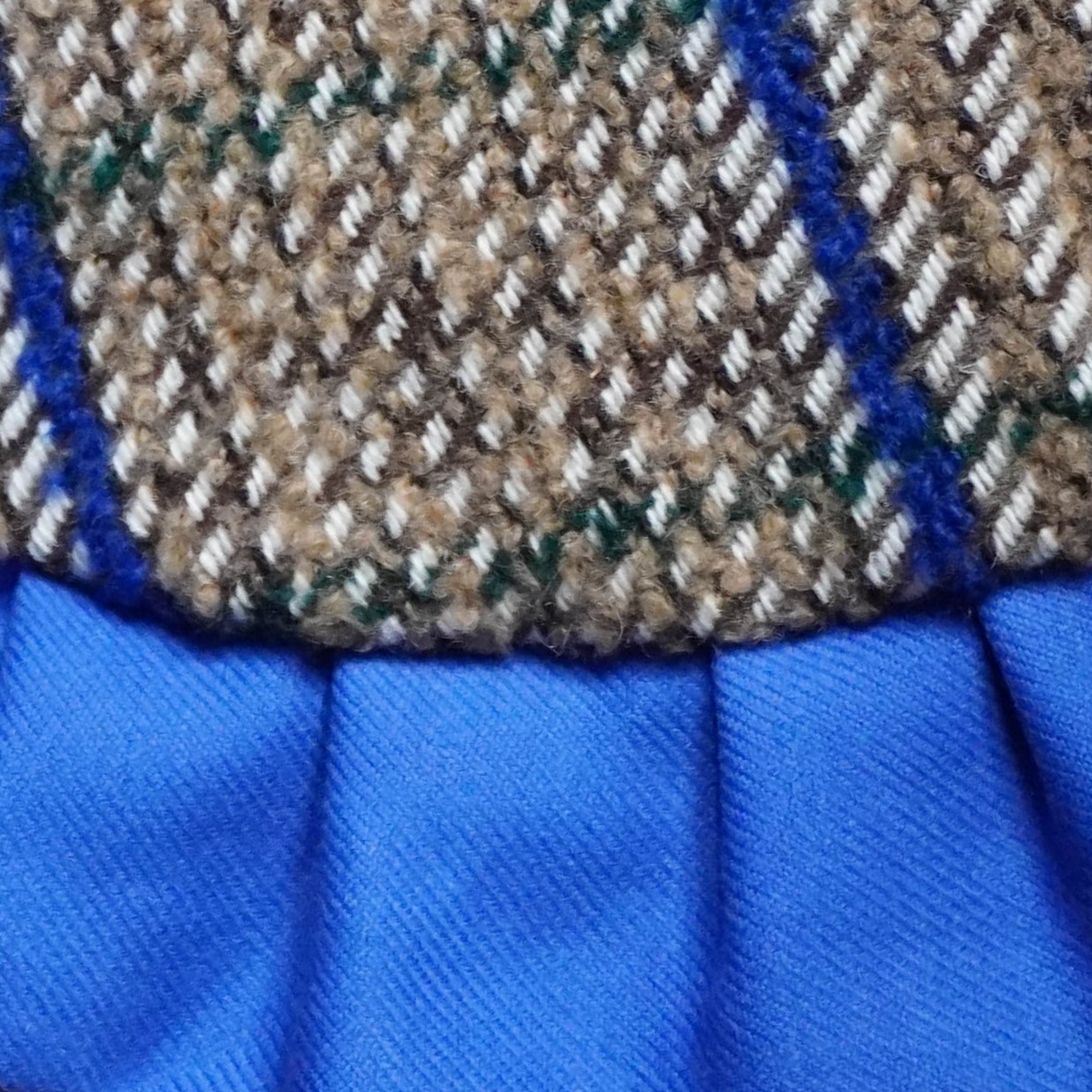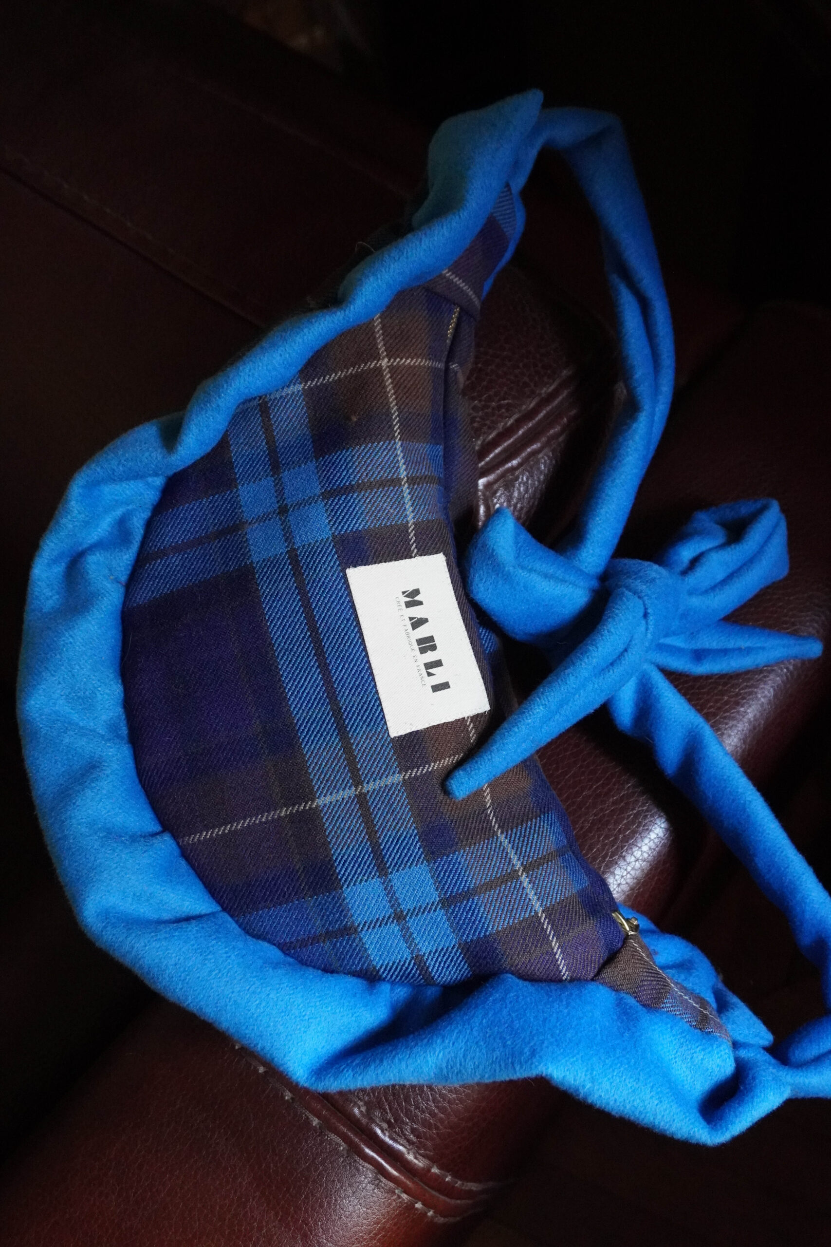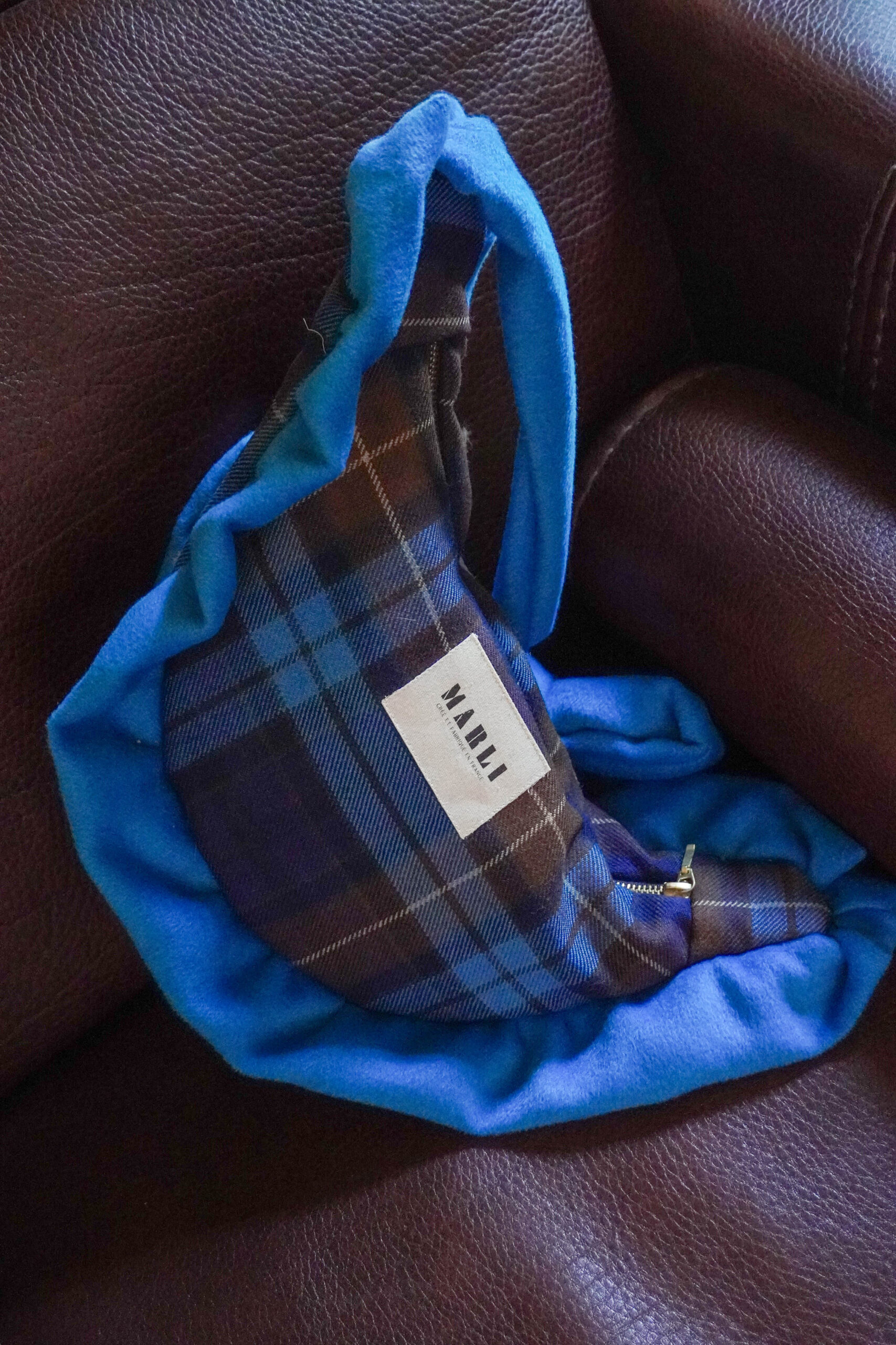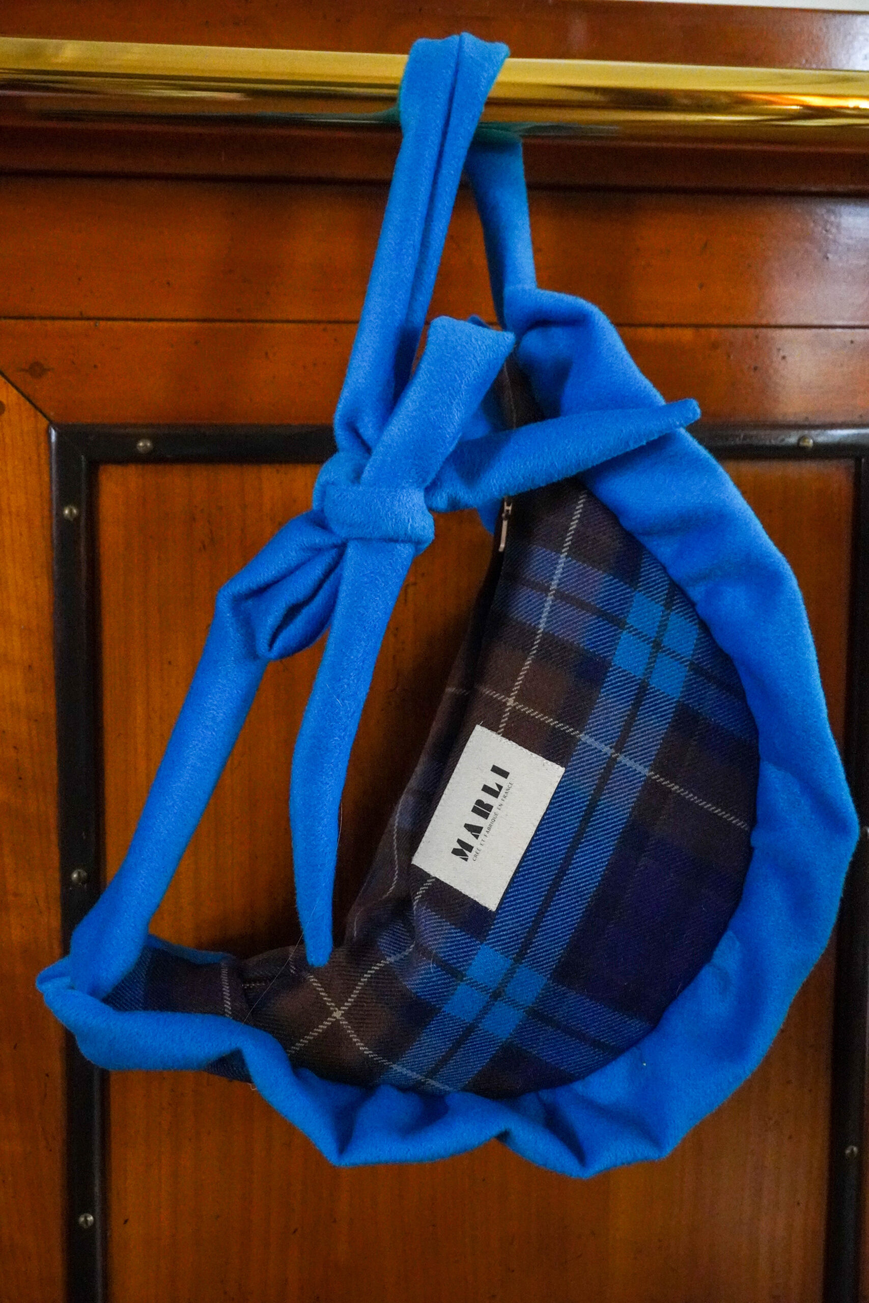 Sac banane angela tartan bleu et marron et froufrou bleu