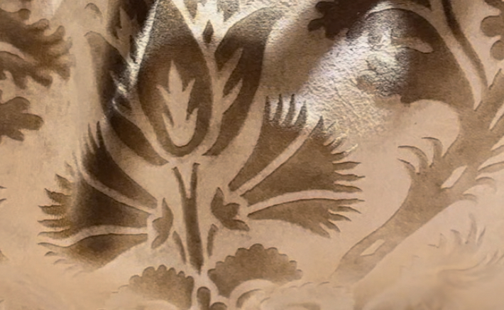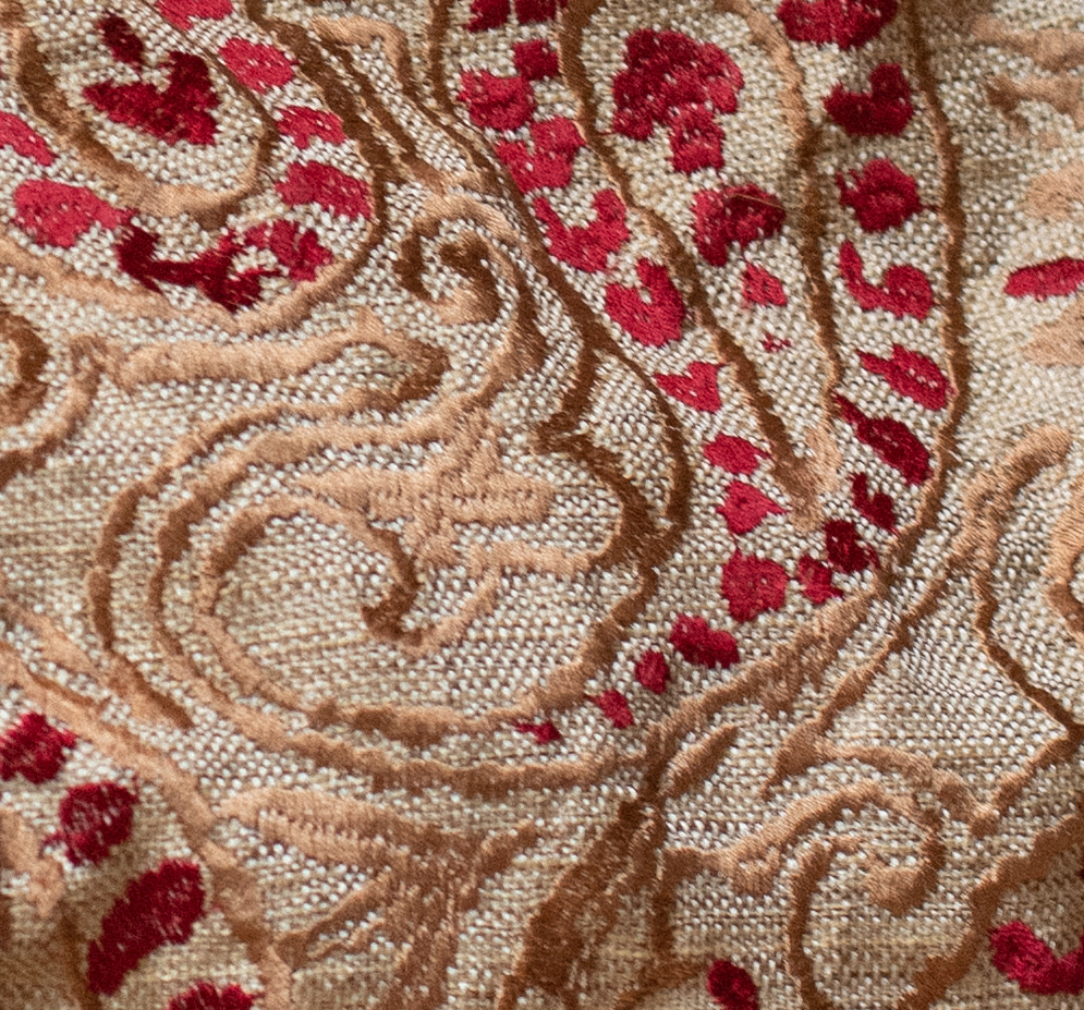 Tissu de luxe provenant de l’hôtel parisien 5étoiles du Pavillon de la reine , vous pourrez retrouver ce motif sur les tapisseries du couloir de l’hôtel