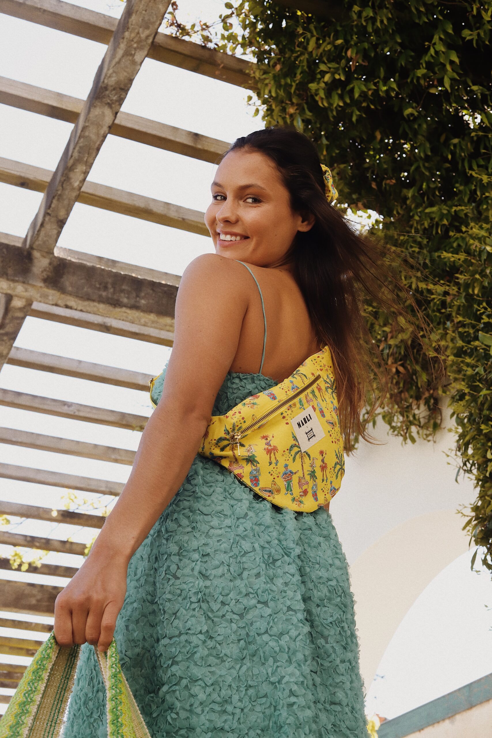 Fabriquée à la main en France, cette pièce est issue de notre collaboration exclusive avec Maison Datcha, inspirée du Brésil. Une scène en mouvement. Danseuses, musiciens, rythme et énergie se déploient sur un fond jaune lumineux. Cet imprimé a été créé spécialement pour cette collection capsule : vivant et chaleureux, qui capture l’atmosphère festive et vibrante du Brésil.
