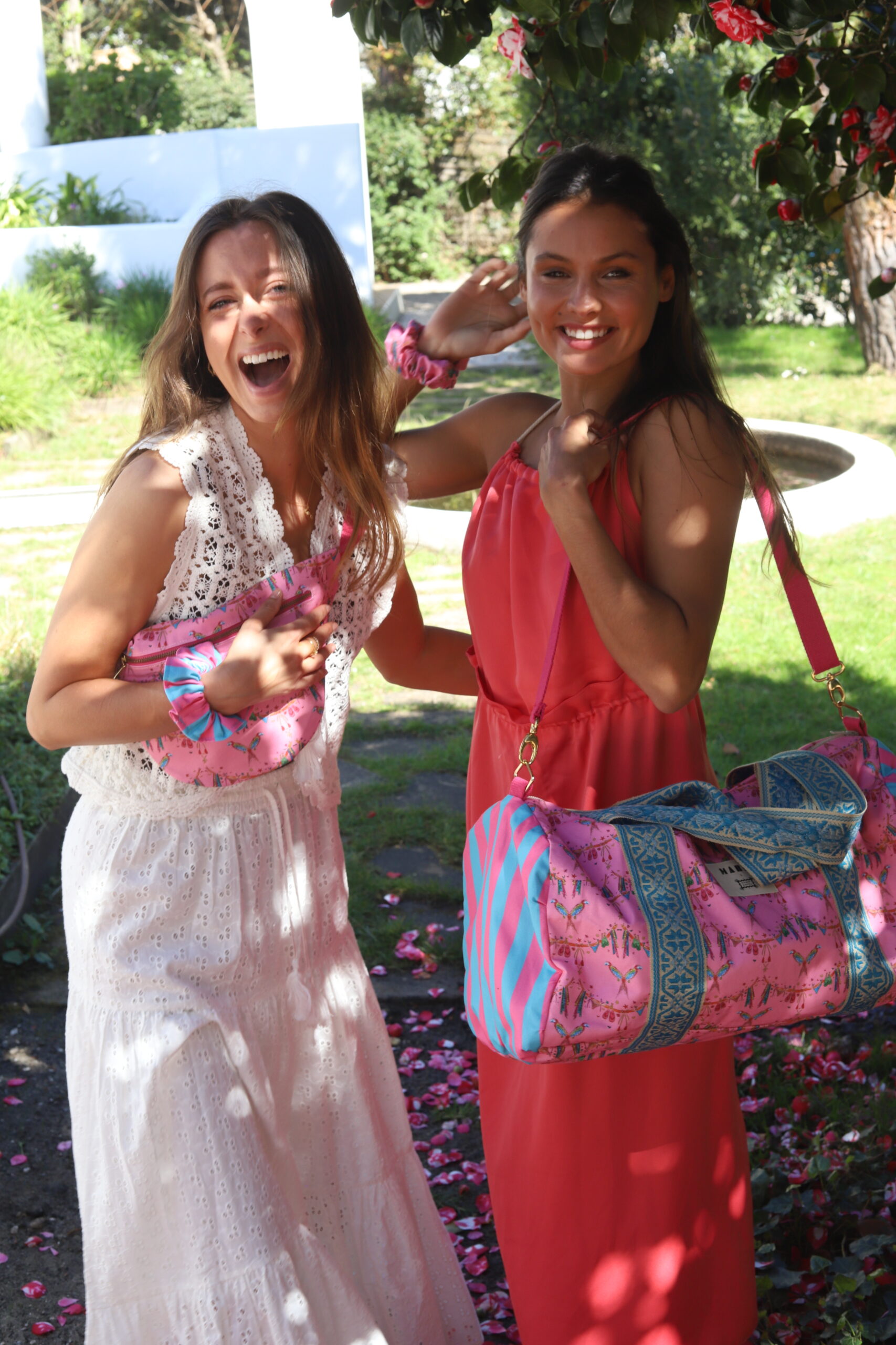 Sac polochon maxi Démétrio – Motif Bikini et Perroquets fond rose