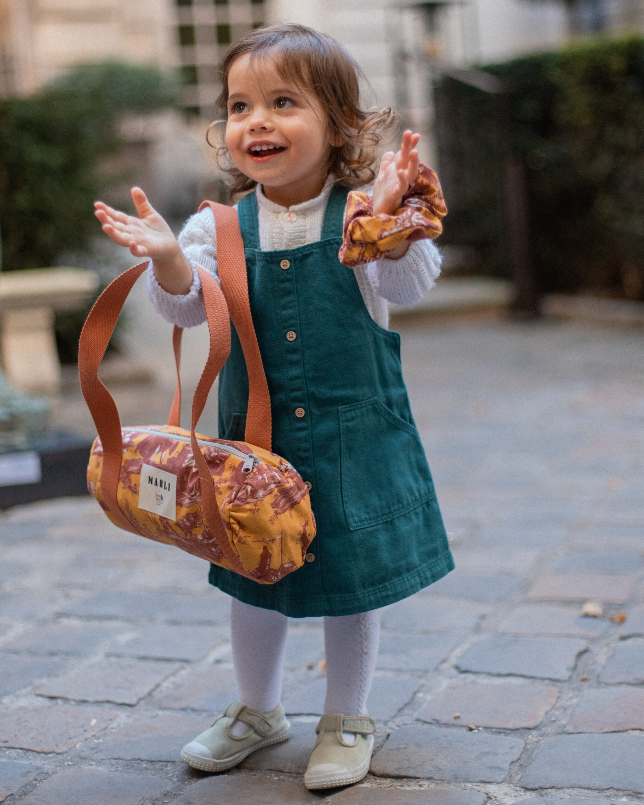 Sac Polochon mini Dima Toile de Jouy terracota et moutarde
