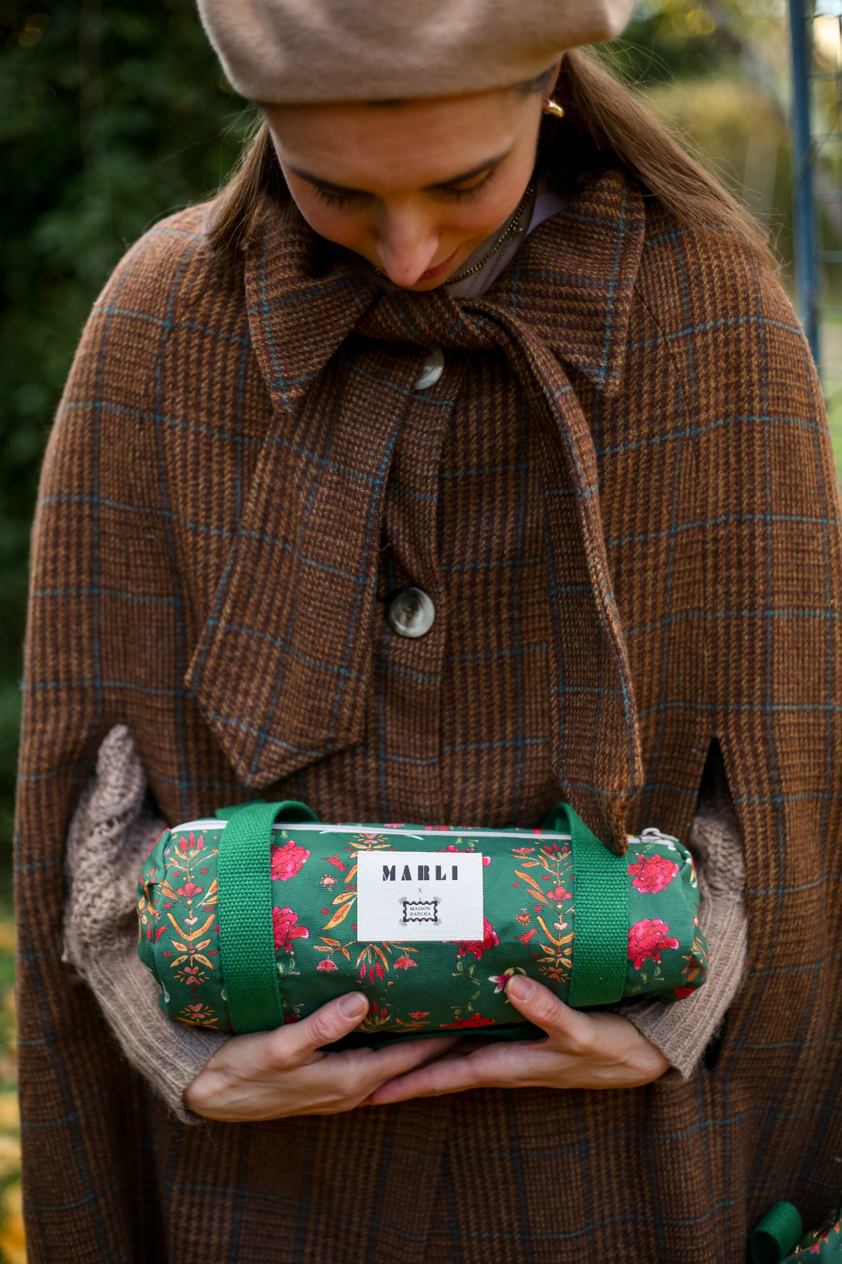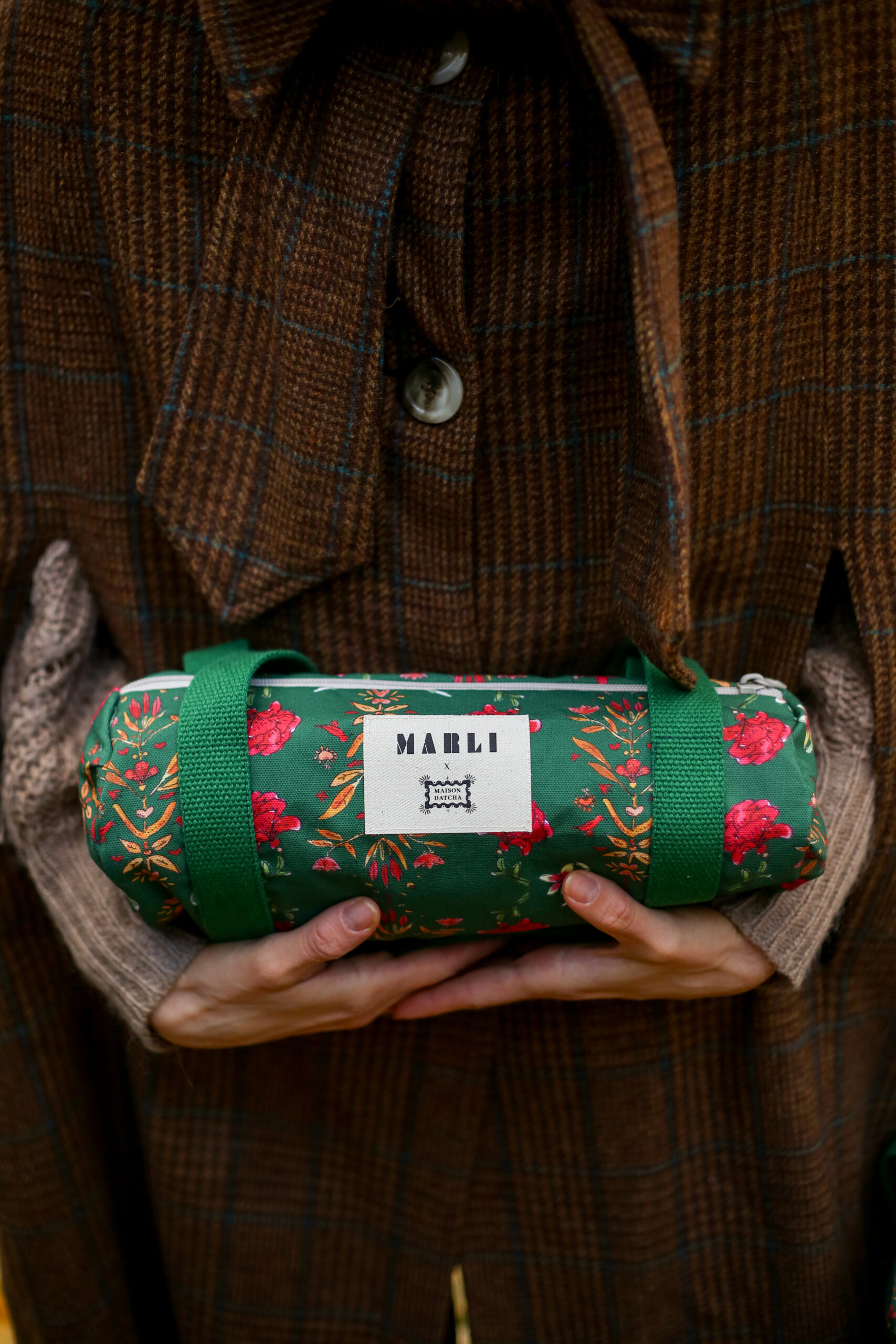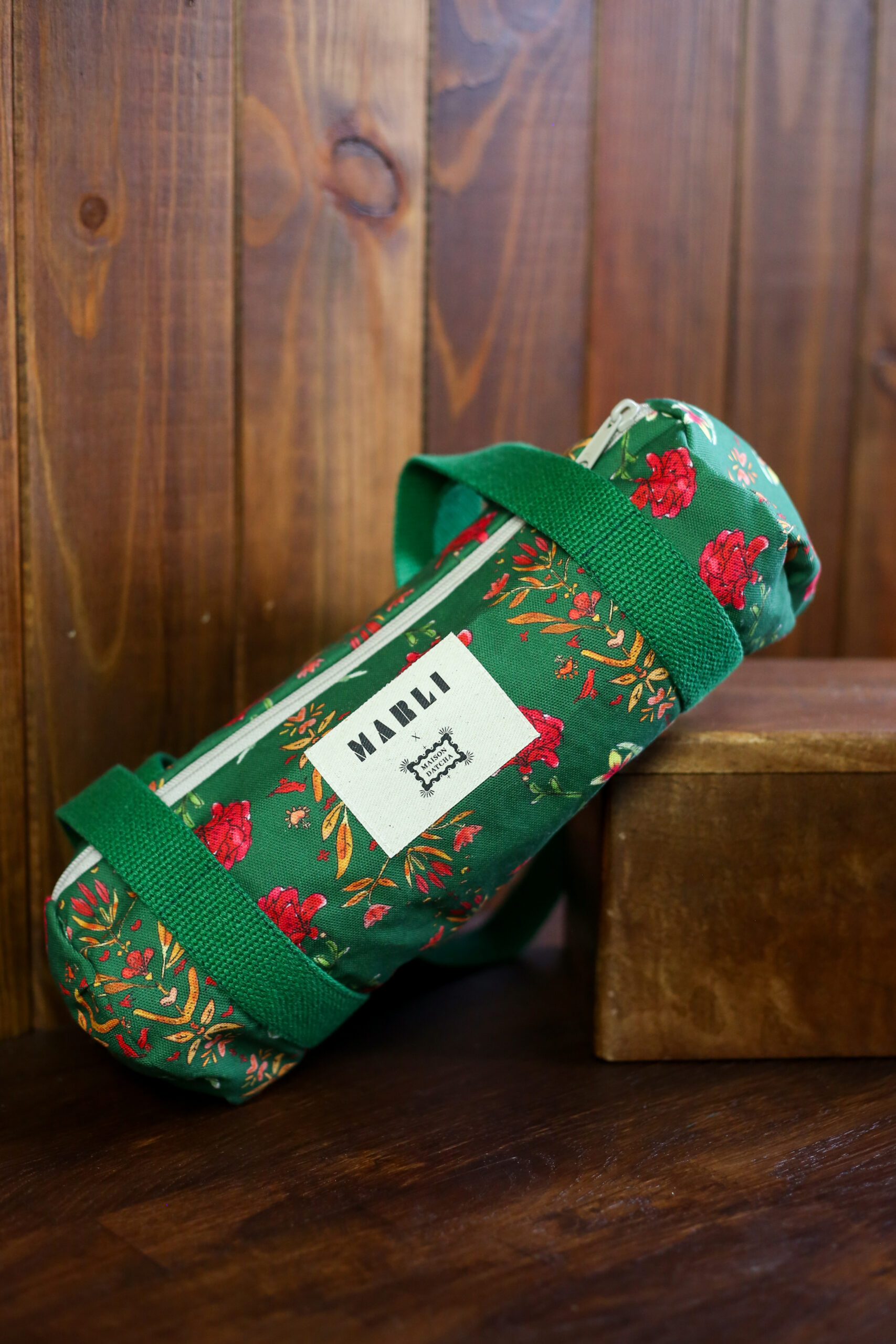 Pourquoi on l’aime ? Fabriquée à la main en France, ce petit sac polochon est confectionnée à partir des tissus issus de notre collaboration exclusive avec Maison Datcha, imaginée autour de l’inspiration hiver slave. Cet imprimé a été créé spécialement pour cette collection capsule. Couleurs vibrantes, motifs floraux et références iconiques au folklore slave (poupées russes, petits chevaux, symboles traditionnels) font de cette pièce un essentiel unique et poétique