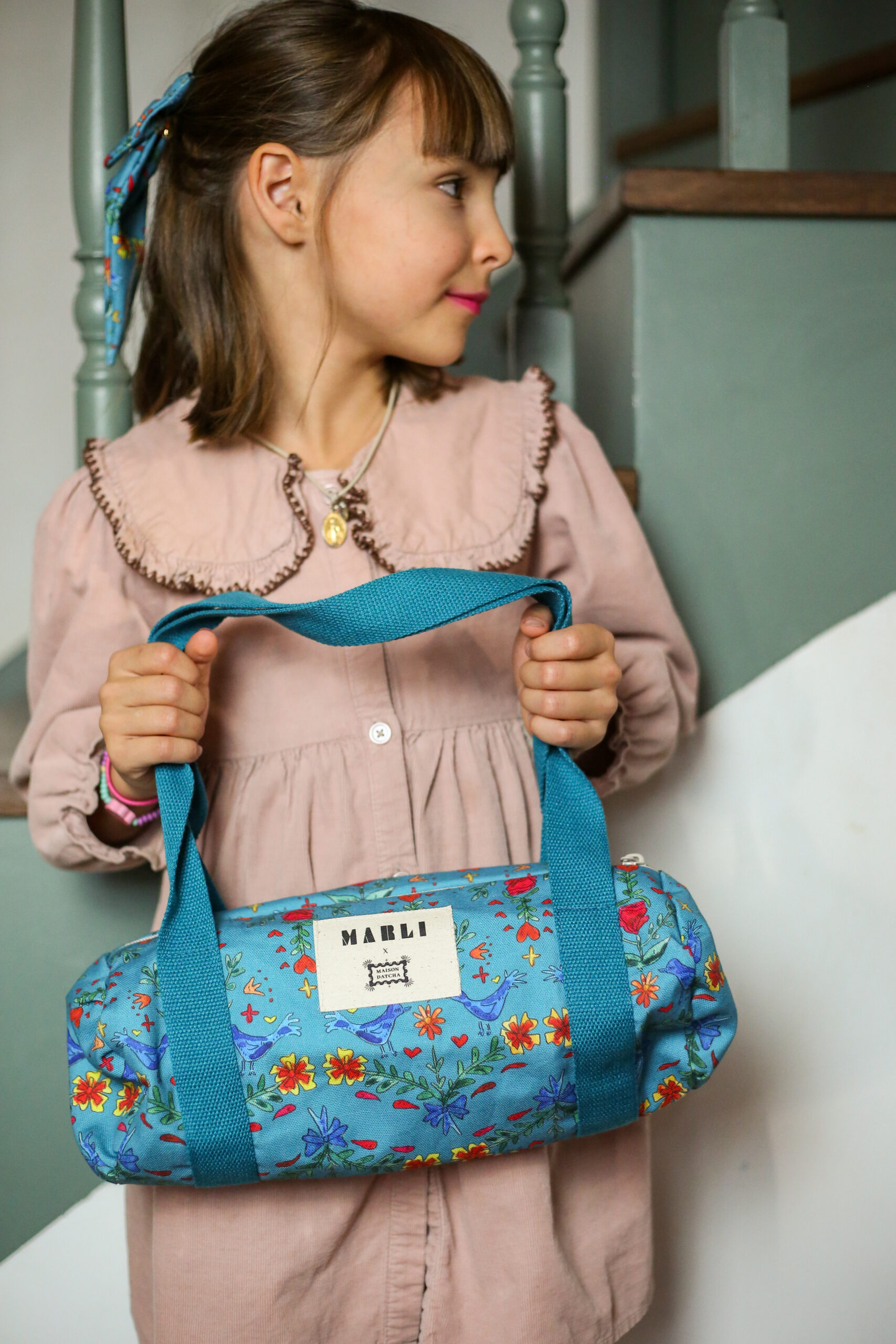 Pourquoi on l’aime ? Fabriquée à la main en France, ce petit sac polochon est confectionnée à partir des tissus issus de notre collaboration exclusive avec Maison Datcha, imaginée autour de l’inspiration hiver slave. Cet imprimé a été créé spécialement pour cette collection capsule. Couleurs vibrantes, motifs floraux et références iconiques au folklore slave (poupées russes, petits chevaux, symboles traditionnels) font de cette pièce un essentiel unique et poétique